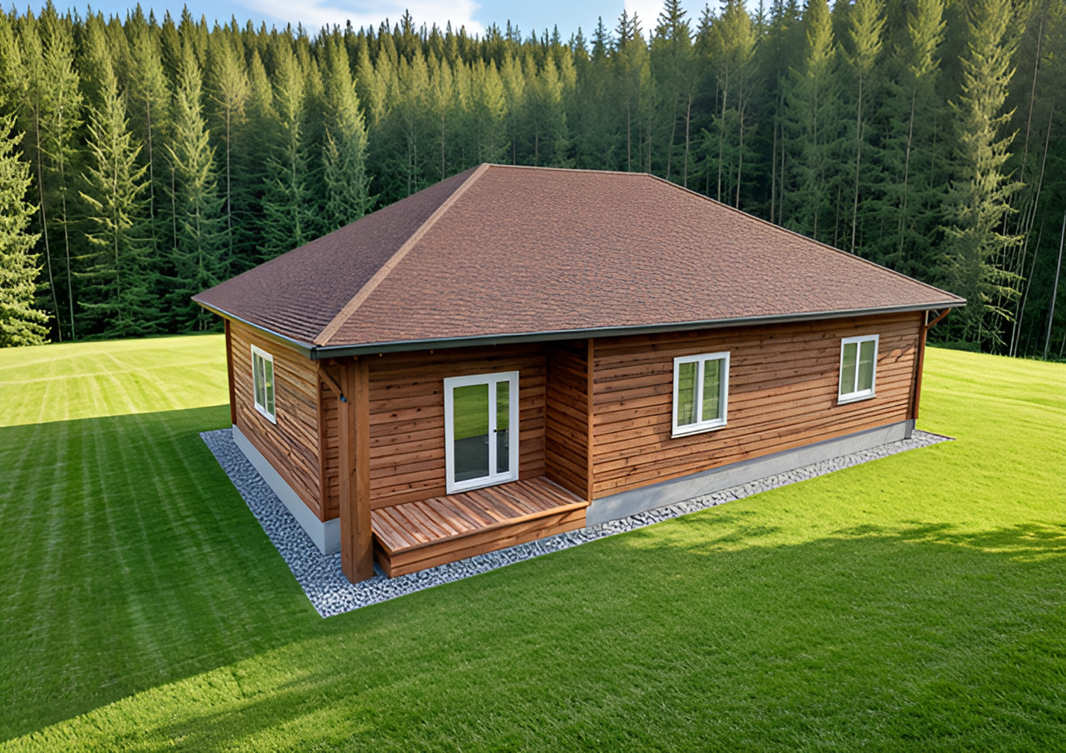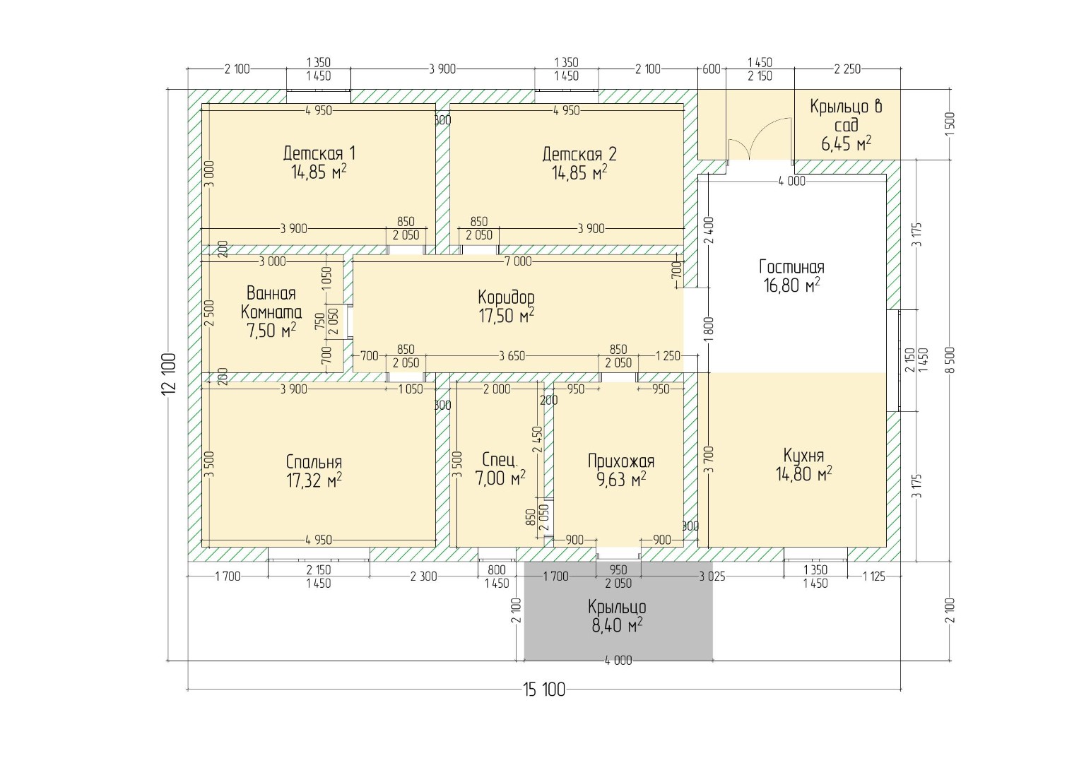 Этот одноэтажный дом включает в себя три спальни и гостиную. Его общая площадь составляет 120,25 квадратных метров(без учета крыльца).*Обратите внимание, что в стоимость входит только черновая отделка.*
